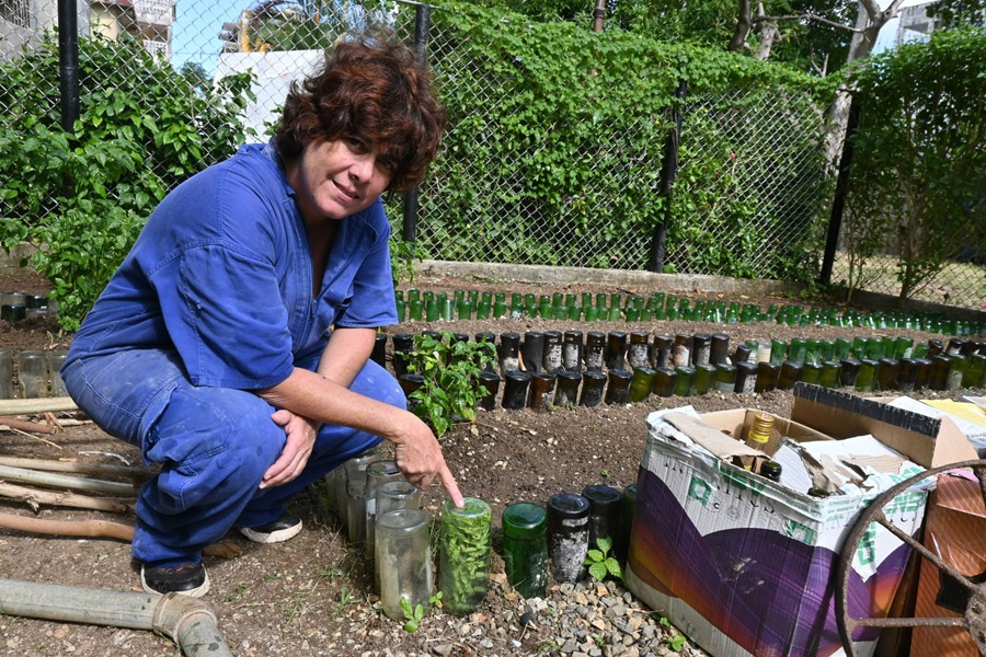 Anibex Abreu, de 48 años y actriz de profesión, es la creadora de Devuelta, un proyecto de reciclaje creativo con envases de vidrio, iniciado hace tres años en el municipio habanero del Cerro.