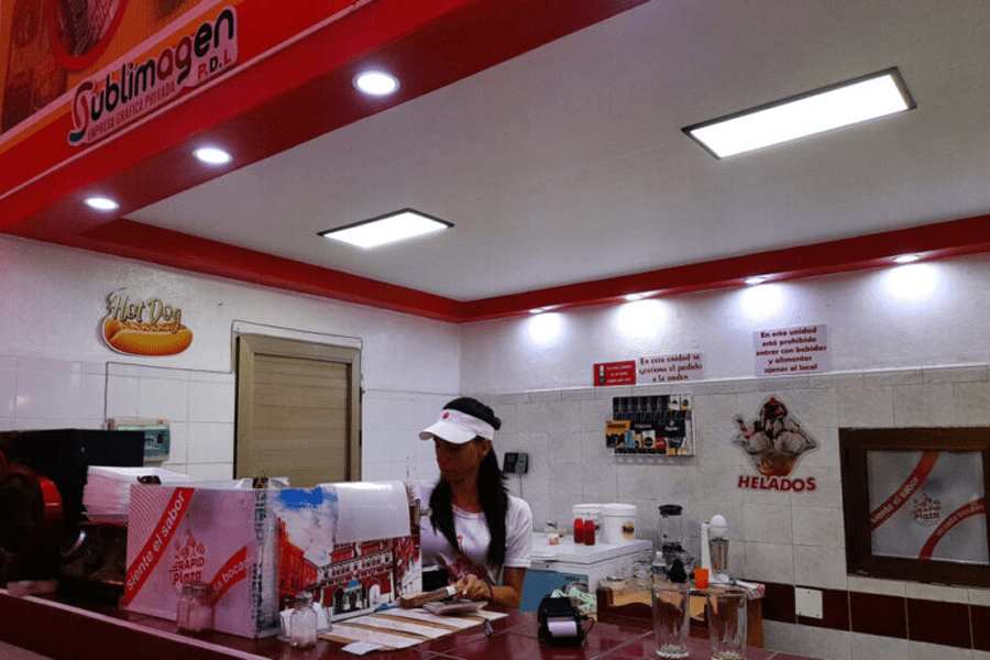Una empleada en el interior del restaurante Café Grille Plaza Roja, local arrendado por la empresa privada Sublimagen, que ofrece servicios de gastronomía, impresión y producción de artesanías, en la ciudad oriental de Bayamo. En Cuba resulta muy inaccesible el crédito a las mipymes, sin importar las particularidades y tamaños de los negocios. Imagen: Jorge Luis Baños / IPS