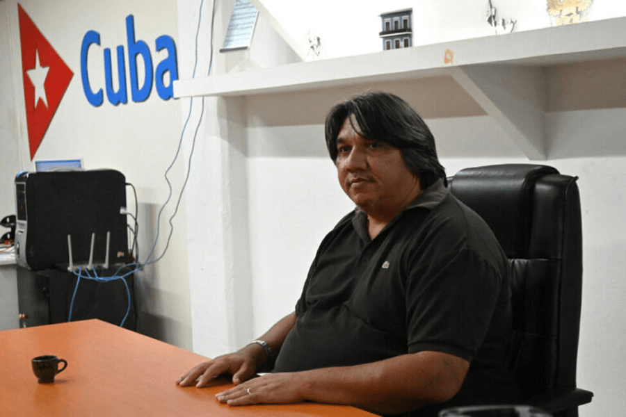 Oleg Zamora, presidente de la empresa privada Sublimagen, que ofrece servicios de gastronomía, impresión y producción de artesanías, en la ciudad de Bayamo, en el este de Cuba. Está arrepentido de haber pedido un crédito demasiado alto que ahora la empresa tiene muchas dificultades para pagar. Imagen: Jorge Luis Baños / IPS