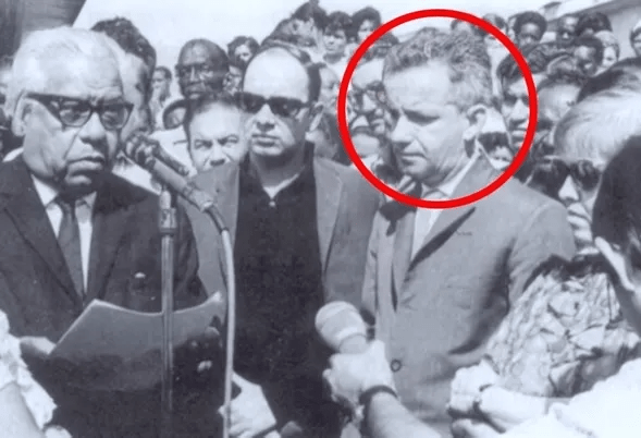 De izquierda a derecha: Nicolás Guillén, Alfredo Guevara y Luis Pavón Tamayo (círculo rojo) / Foto: Cubanet