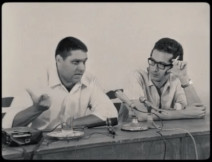 Armando Quesada (izquierda) junto a Norberto Fuentes (derecha) en la autocrítica de Heberto Padilla en 1971 / Fotograma del documental El Caso Padilla