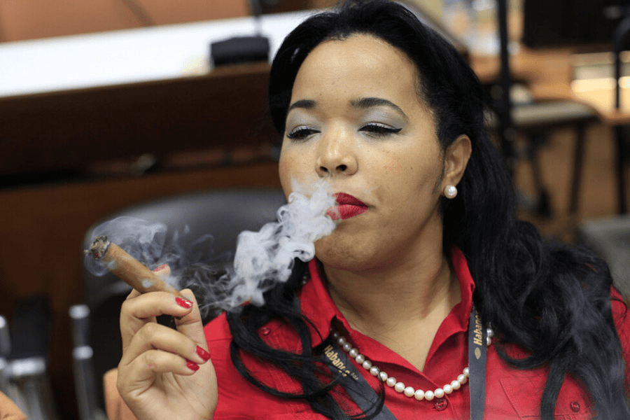Una mujer fuma un cigarro puro durante la celebración del Festival del Habano, en La Habana. Unos dos millones de personas, mayores de 15 años, fuman en Cuba, y muchos lo hacen de cigarros puros. (Foto: Jorge Luis Baños / IPS Cuba)