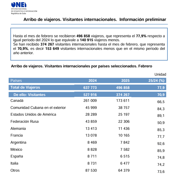 Esto impactará evidentemente en los ingresos en divisas del sector y del país. El reto es detener el descenso, y empezar a revertir la tendencia, nuestro principal mercado emisor Canadá, ha descendido -33.5 % hasta febrero 2025 vs 2024.