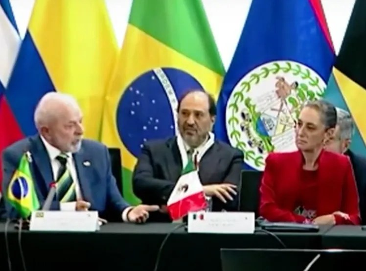 Luiz Inácio Lula y Claudia Sheinbaum, en primer plano, en la cumbre de la Celac en Tegucigalpa, el 9 de abril de 2025. Imagen tomada de la transmisión del canal 8 de Honduras