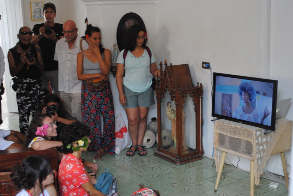 Proyección de un corto documental, realizado por el proyecto Casa Gitana, durante la edición 19 del Festival Internacional de Cine Pobre de Gibara. Más de 500 materiales audiovisuales serán presentados en este encuentro cinematográfico, que se desarrolla del 15 al 19 de abril en el este de Cuba.Foto: Cortesía del Festival Internacional de Cine Pobre de Gibara