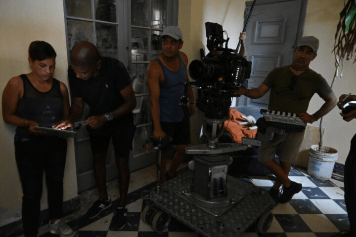 Realizadores audiovisuales en un set de filmación de la productora audiovisual independiente i4films, en La Habana. La producción audiovisual independiente en Cuba no escapa a la crisis general de financiamiento y muchas veces deben buscar múltiples vías para ser rentables.