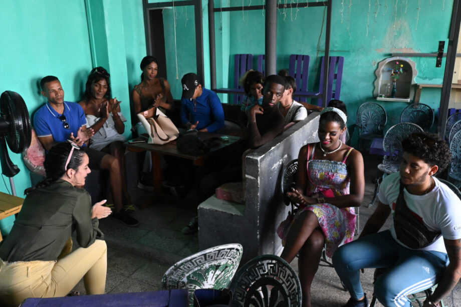 Miembros de la comunidad Lgbti participan en un encuentro grupal con una psicóloga en la sede del proyecto AfroAtenas, en la ciudad de Matanzas, a 103 kilómetros al este de La Habana. Las personas trans son las más discriminadas y violentadas dentro del colectivo.