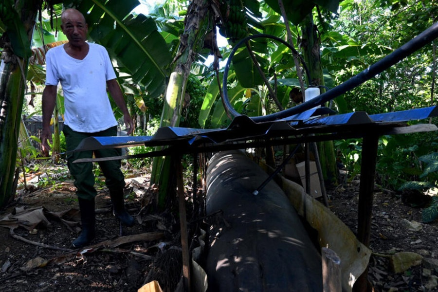 Un trabajador agrícola, junto a un biodigestor construido en el patio de su vivienda, en el municipio de Boyeros, en La Habana. En el actual contexto de crisis energética en Cuba, algunos ciudadanos logran encontrar alternativas al suministro eléctrico del sistema general. (Foto: Jorge Luis Baños/ IPS Cuba)
