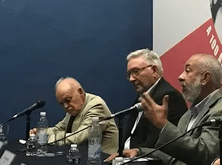 El nieto de Trotski, Esteban Volkow; el escritor marxista Alan Woods y el novelista cubano Leonardo Padura, el 10 de noviembre de 2017, en la Casa Museo León Trotski. Foto Gerardo Arreola