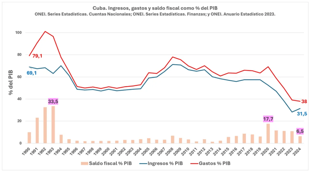 Contrariamente al relato oficial, el carácter social del presupuesto estatal de Cuba se ha erosionado notablemente en el marco general de acelerado declive del peso de los ingresos y gastos del presupuesto en relación con el PIB en la era “post-ordenamiento”.