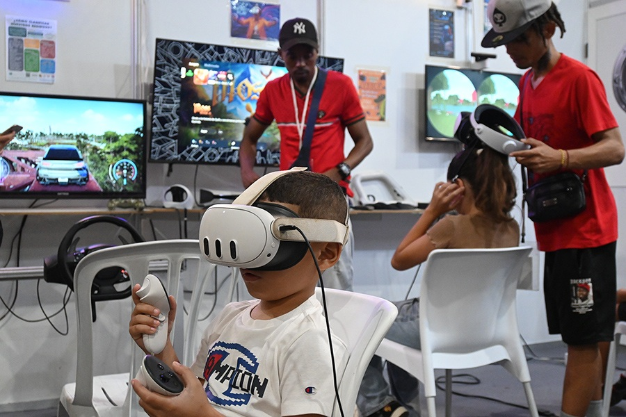 Dos niños juegan con equipos de realidad virtual en el estand de una empresa privada durante el Festival de verano Pa’ Cuba, en el recinto ferial Pabexpo, en La Habana. Las alianzas público-privadas constituyen aún un desafío para la economía cubana.