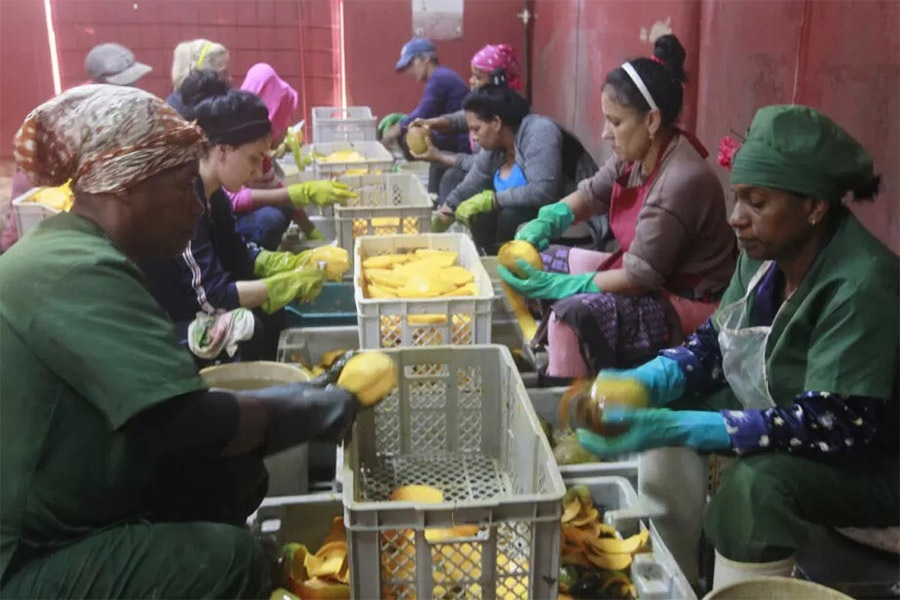 Mujeres laboran en el procesamiento de mangos en la miniempresa estatal Villaroja, en La provincia de Artemisa, en el oeste de Cuba. El nuevo Código de Trabajo ofrecería mayor protección para los casos de acoso laboral, así como reforzaría las garantías de una remuneración igualitaria entre hombres y mujeres.