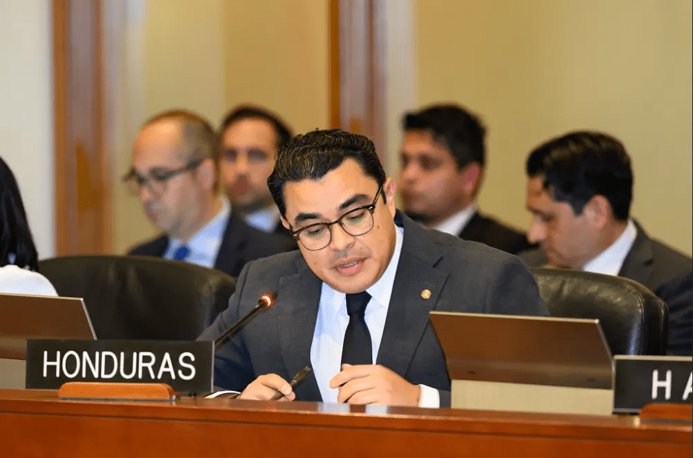 El vicecanciller hondureño Gerardo Torres, en la sesión extraordinaria del Consejo Permanente de la OEA, el 25 de noviembre de 2025[C1] .