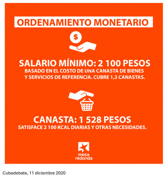 Se explicó entonces en detalle el procedimiento utilizado para calcular el valor “de diseño” de la CBSR que se estimaba en 1528 CUP per cápita mensual para el momento de inicio del “ordenamiento” a partir del 1ro de enero de 2021.