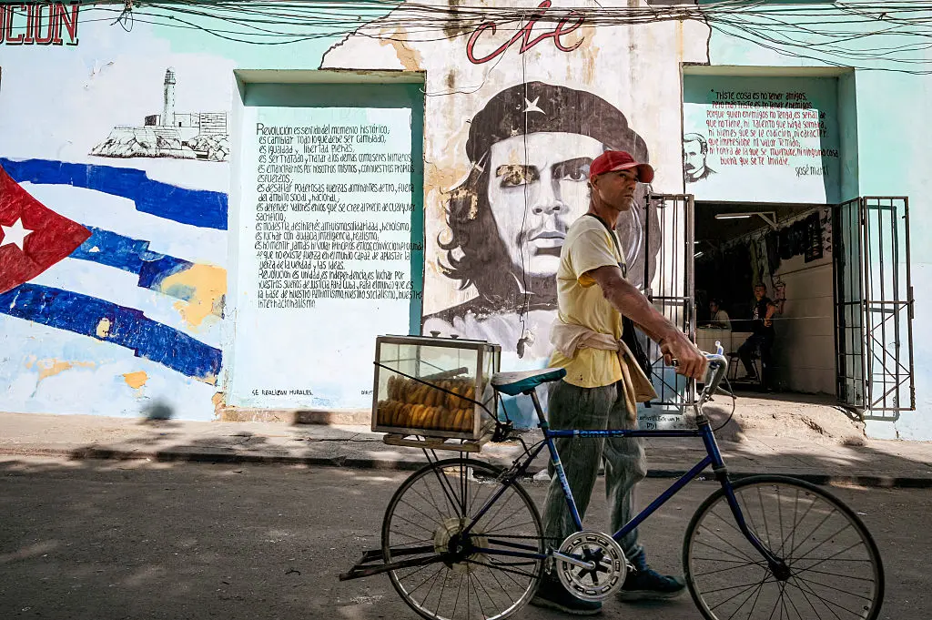 Pasteles frente a un mural del héroe de la Revolución cubana, Ernesto «Che» Guevara, en La Habana el 6 de enero de 2026. (Foto de ADALBERTO ROQUE / AFP vía Getty Images) AFP vía Getty Images—AFP o licenciantes