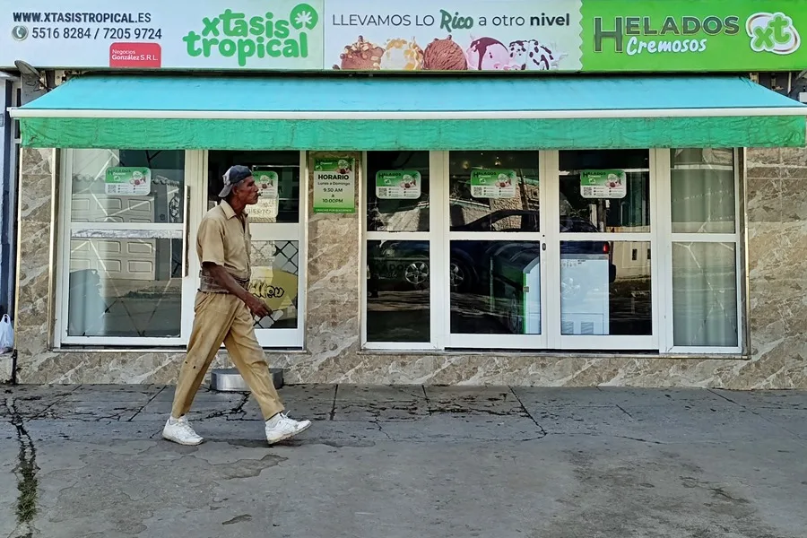 Fotografía de archivo de una persona caminando frente a un negocio privado en La Habana (Cuba). EFE/ Ernesto Mastrascusa