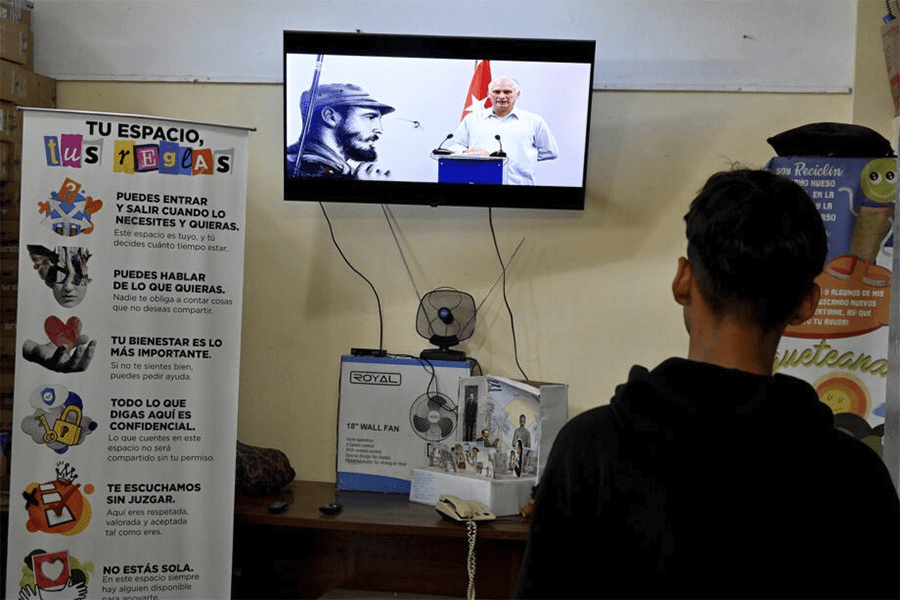 Un joven observa la transmisión de la conferencia del presidente cubano Miguel Díaz-Canel, televisada en cadena nacional el 13 de marzo. El mandatario confirmó en ella la existencia de una mesa de negociaciones entre Cuba y Estados Unidos. Imagen: Jorge Luis Baños / IPS