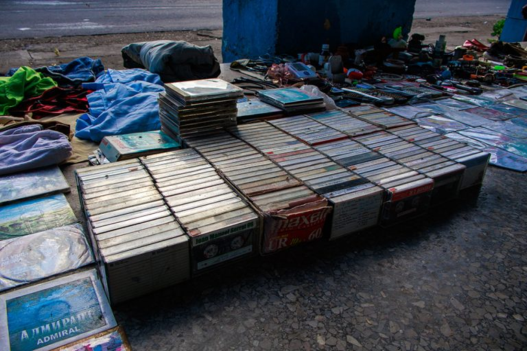 Venta en la calle de casetes y discos usados. Foto: Enrique González (Enro)/ Cubadebate.