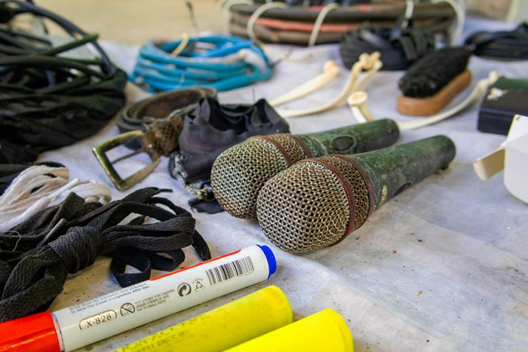 Unos micrófonos viejos destacan entre los objetos usados a la venta. Foto: Enrique González (Enro)/ Cubadebate.