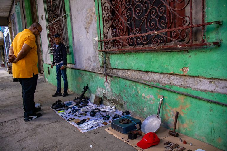 Una persona observa los objetos usados que están a la venta. Foto: Enrique González (Enro)/ Cubadebate.