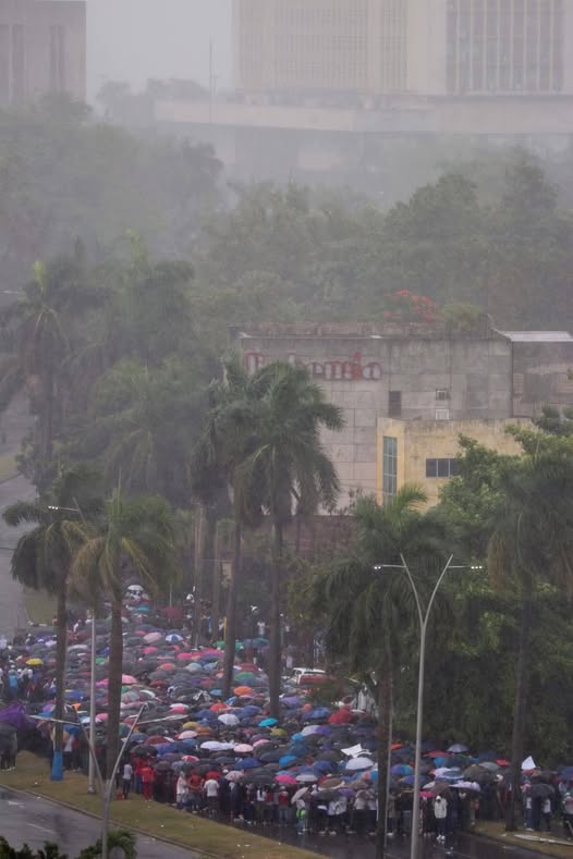La foto recuerda la multitud que, BAJO AGUACERO, despidió a los cubanos que murieron combatiendo en Venezuela, el 3 de enero)